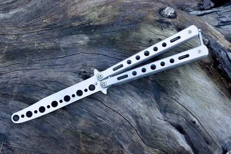 Balisong - Lược bướm butterfly knife dao CSGO tập luyện mô hình skin thép đen bạc