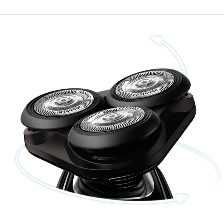 • 3 đầu cạo thiết kế lượn tròn linh động, giúp người dùng cạo sát rất êm ái mà không cắt xước vào da.