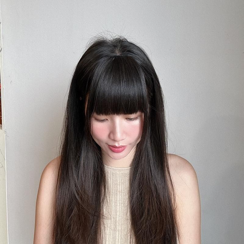 THÔNG TIN SẢN PHẨM: Loại: Mái Hime mái dày Chất liệu: Tóc th.ậ t 100% Uốn, Ép, Nhuộm đều được. Màu sắc: Màu nâu trầm, Màu nâu socola, Màu nâu sáng, Màu