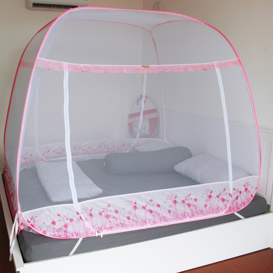 MÀN CHỤP , MÙNG CHỤP CAO CẤP MỘC MIÊN ĐỈNH RỘNG : Màn chụp tự bung cao cấp Mộc Miên đỉnh rộng trắng viền hồng loại 1,6m x2m - 3 cửa :  Xuất xứ :