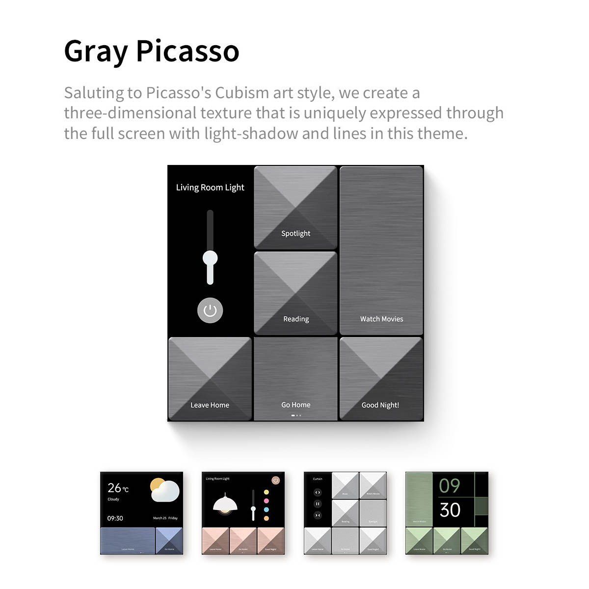 - Các thiết bị tương thích Apple HomeKit khác Thiết kế hiện đại phù hợp với nhiều không gian khác nhau Aqara Magic Switch S1E có thể thay đổi giao diện từ một trong 54 mẫu có thể tùy chỉnh. Các themes có thể tùy chỉnh theo từng trang để phù hợp với không gian và kiến trúc của căn nhà. Một số lưu ý khi sử dụng màn hình cảm ứng Aqara S1