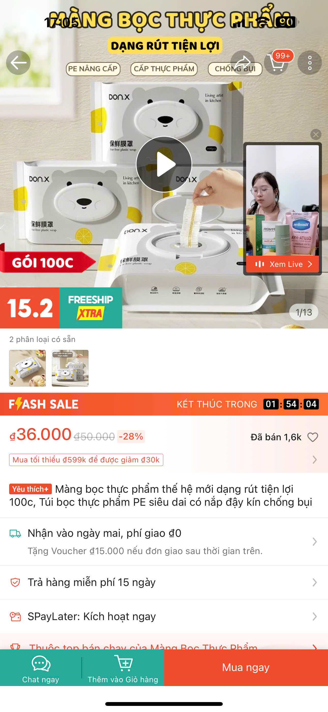 • Màu Sắc Đơn Giản, Quan Sát Dễ Dàng: Màng bọc có màu sắc trắng trong suốt, giúp bạn dễ dàng quan sát tình trạng thực phẩm bên trong, từ đó có thể theo dõi và quản lý thực phẩm tốt hơn.