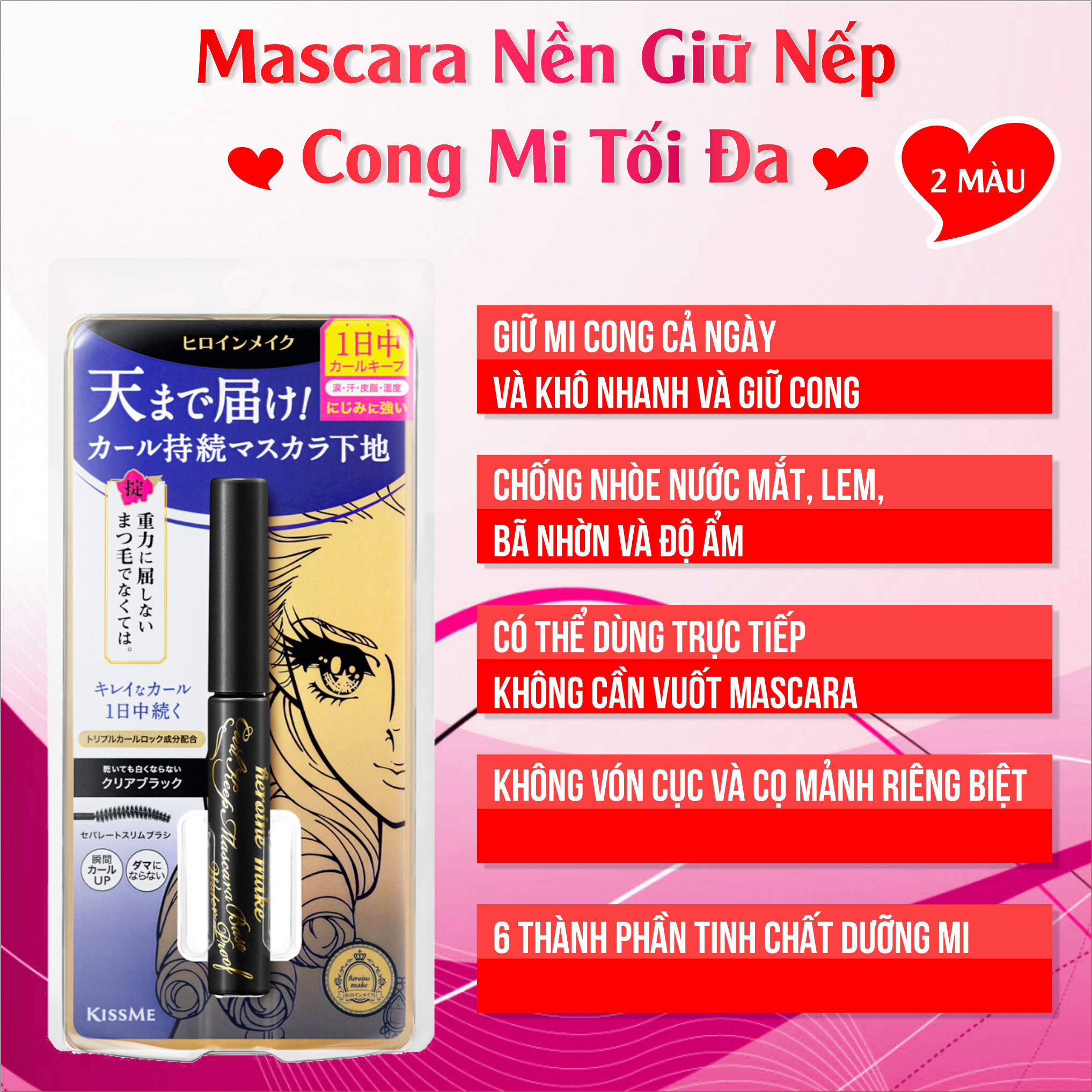 Mascara Lót Nền Siêu Nâng Cong Mi Dạng Màng Film Chống Trôi Siêu Bền Trong 24h Kissme Heroine Make Curl Keep Mascara Base