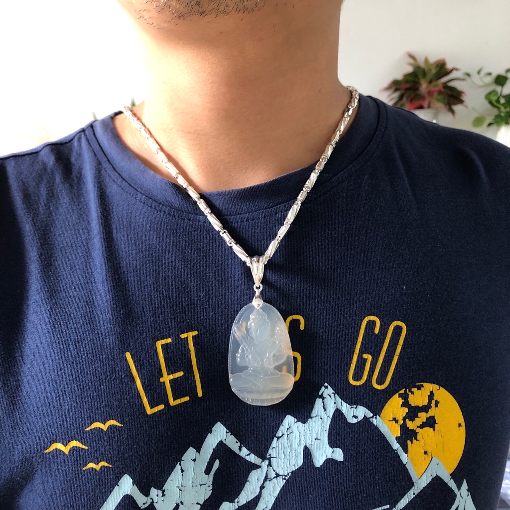 Mặt dây chuyền hư không tạng bồ tát ngọc bích thiên nhiên - phật hộ mệnh tuổi Sửu và Dần #daquymudi