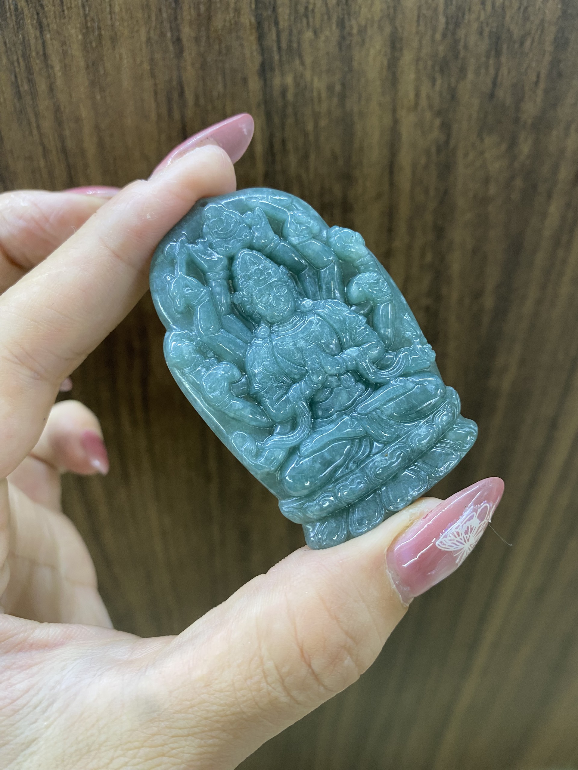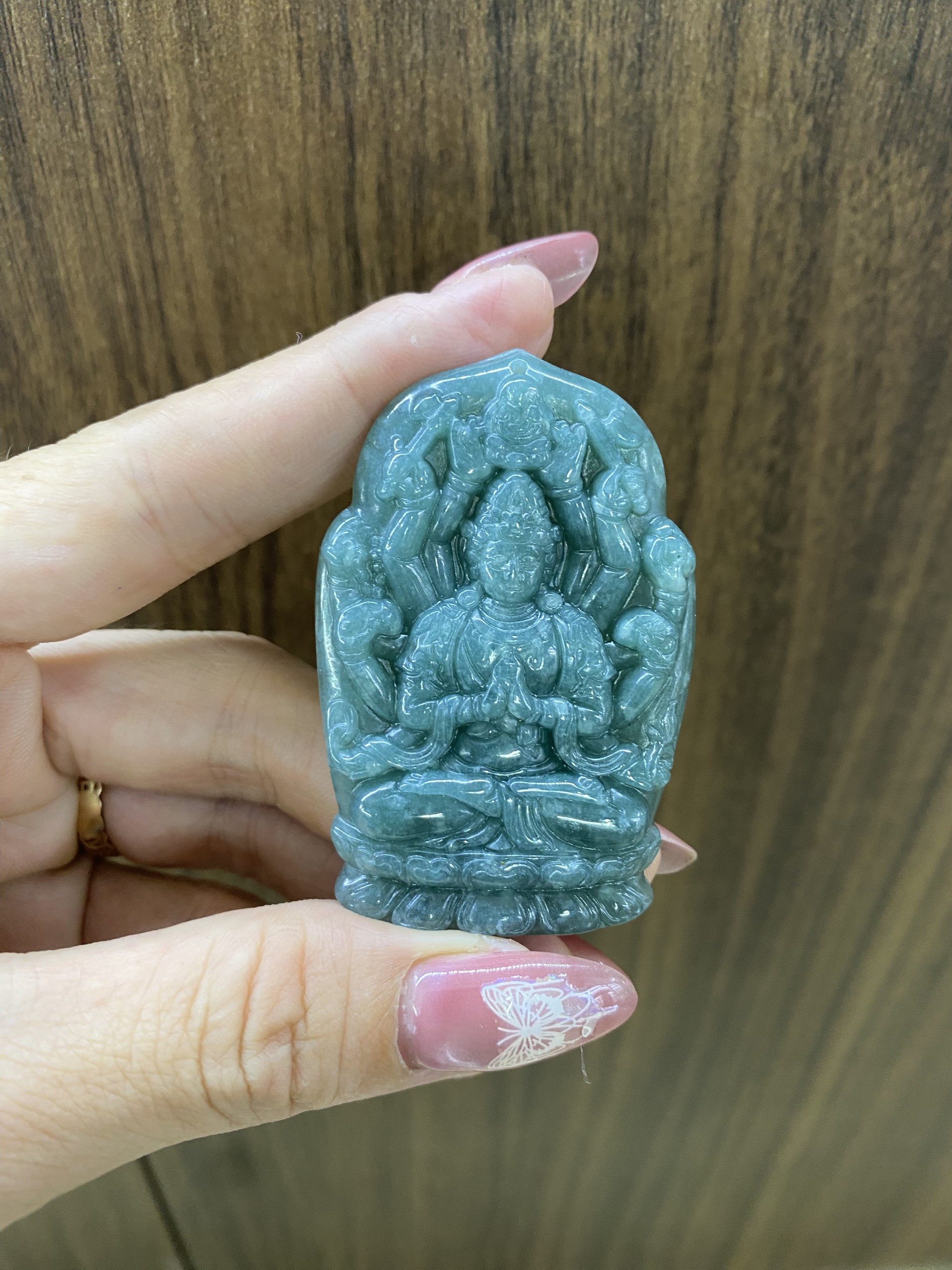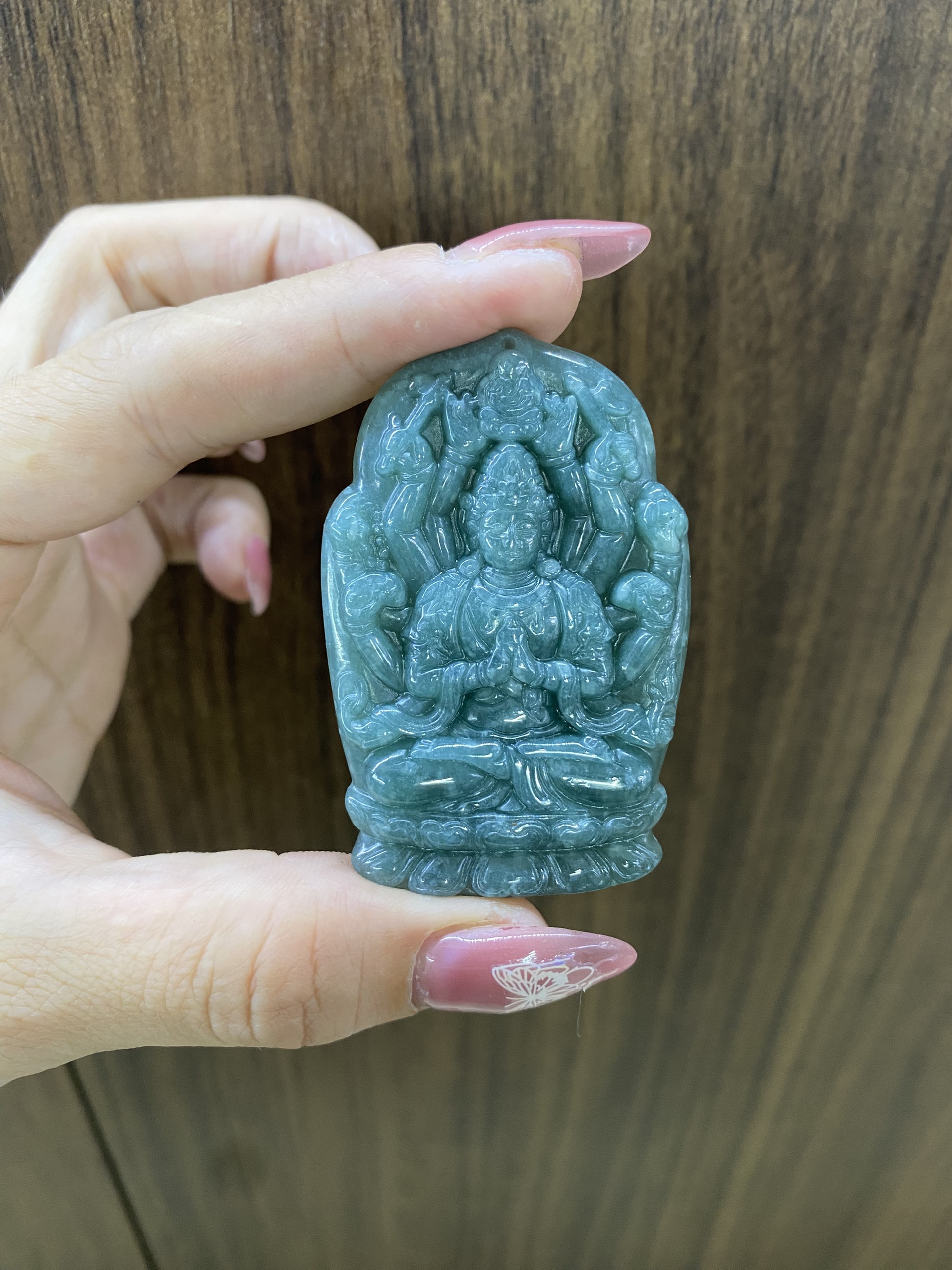Mặt dây chuyền quan thế âm bồ tát( thiên thủ thiên nhãn) ngọc bích xanh . #daquymuxi #trangsucngoc