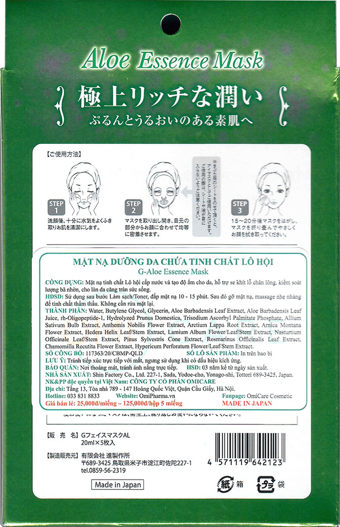 ✨Mặt nạ dưỡng ẩm tinh chất Lô Hội G Face Mask AL ( Hộp 5 miếng)