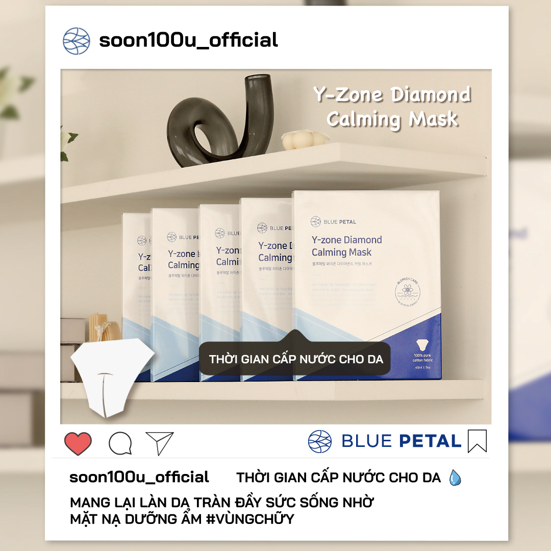 - Mặt NạTừ Vải Cotton 100% Nguyên Chất Mềm Mịn Chất Liệu Thân Thiện Với Môi Trường HDSD: Bước 1 Làm Sạch Mồ Hôi Và Các Chất Bẩn Ở Khu Vực Sẽ Dán Mặt Nạ Bước 2 Lấy Mặt Nạ Cấp Ẩm, Dưỡng Trắng Và Làm Dịu Vùng Chữ Y Blue Petal Y zone Diamond Calming Mask , Sau Đó Trải Miếng Dán Ra Sau Đó Đắp Lên Vùng Cần Sử Dụng " Bước 3 : Ấn Nhẹ Để Mặt Nạ Bám Đều Trên Da, Kéo Phần Dưới Mặt Để Nó Phủ Đều Lên Vị Trí Cần Thiết Sau 10-20 phút, Hãy Tháo Mặt Nạ Và Vỗ Nhẹ Lên Vùng Da Để Các Tinh Chất Được Thẩm Thấu Sâu Vào Bên Trong Bạn Có Thể Cắt Đôi Sản Phẩm Theo Chiều Dọc Để Sử Dụng Lên Chân Hoặc Cánh Tay Giúp Làm Mát Và Làm Dịu Nếu Sử Dụng Sau Khi Để Vào Tủ Lạnh, Bạn Có Thể Cảm Nhận Cảm Giác Mát Lạnh Hơn Khi Sử Dụng