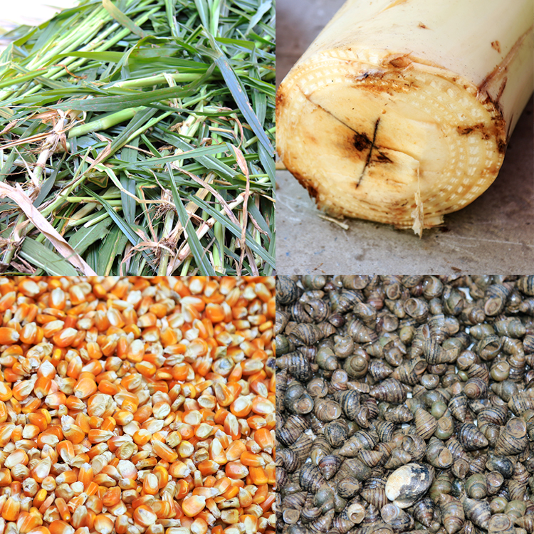 Nghiền nát nhuyễn cỏ voi, rau, bèo tây, thân cây chuố