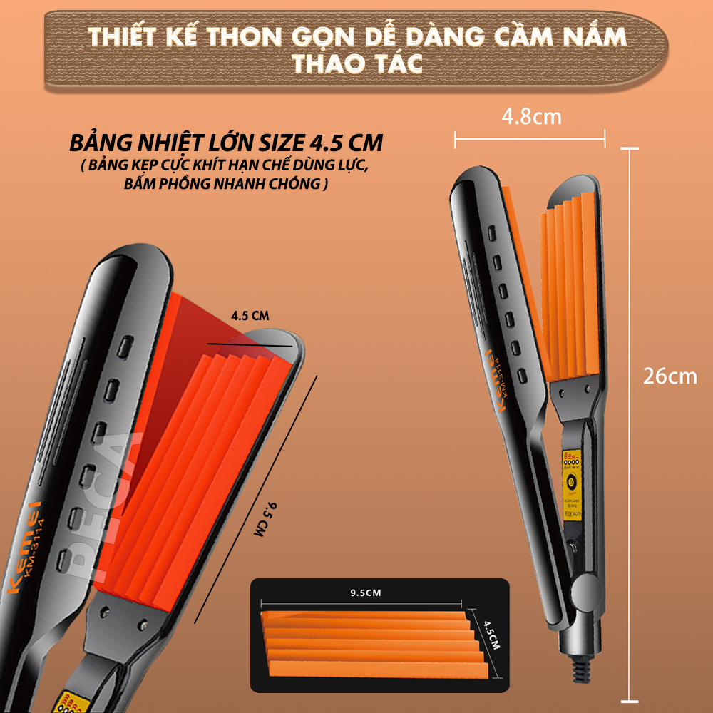 Máy bấm tóc Kemei KM-3114Y sử dụng tạo nhiều kiểu tóc chuyên dụng: bấm phồng chân tóc, tạo kiểu tóc gợn sóng, tóc xù,...