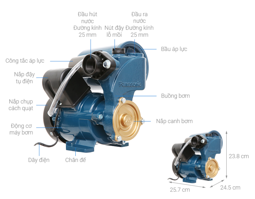 Lưu ý: Máy bơm Panasonic 200W này chỉ dùng hiệu quả cho cả gia đình (dùng một lúc: máy giặt, bồn rửa chén, vòi ). Nếu chỉ dùng cho 1 thiết bị riêng biệt thì sẽ gây ra lãng phí vì công suất lớn. Với trường hợp này, bạn có thể tìm mua các loại máy bơm mini với công suất nhỏ hơn để tiện sử dụng (dưới 100W).