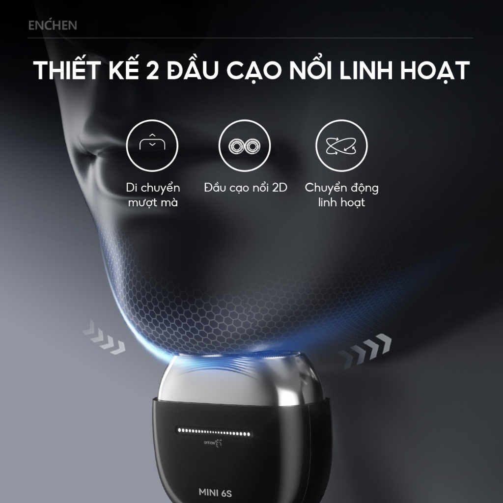 ✨Máy cạo râu Enchen Mini 6s - Đầu cạo nổi 28 lưỡi dao kép tự mài, chống nước toàn thân - Hàng chính hãng