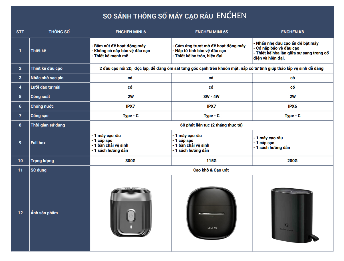 Máy cạo râu mini Enchen K8 và Mini 6, so sánh nhanh