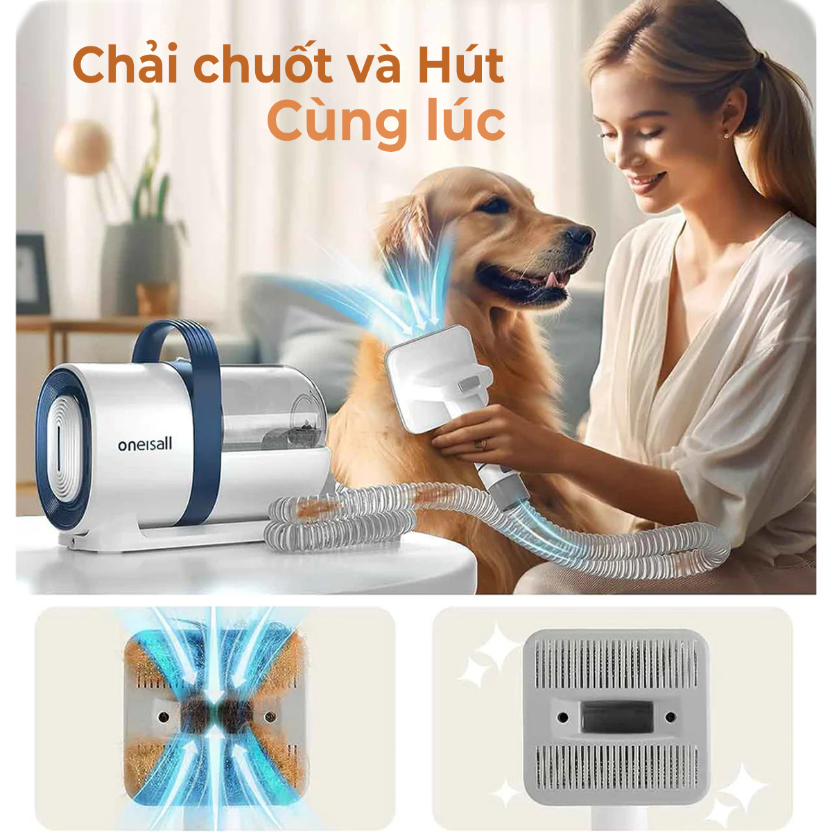 - Kết hợp chải chuốt, cắt tỉa và hút lông cùng lúc, lực hút mạnh mẽ 10000Pa, hạn chế lông thú cưng bay ra sàn nhà.