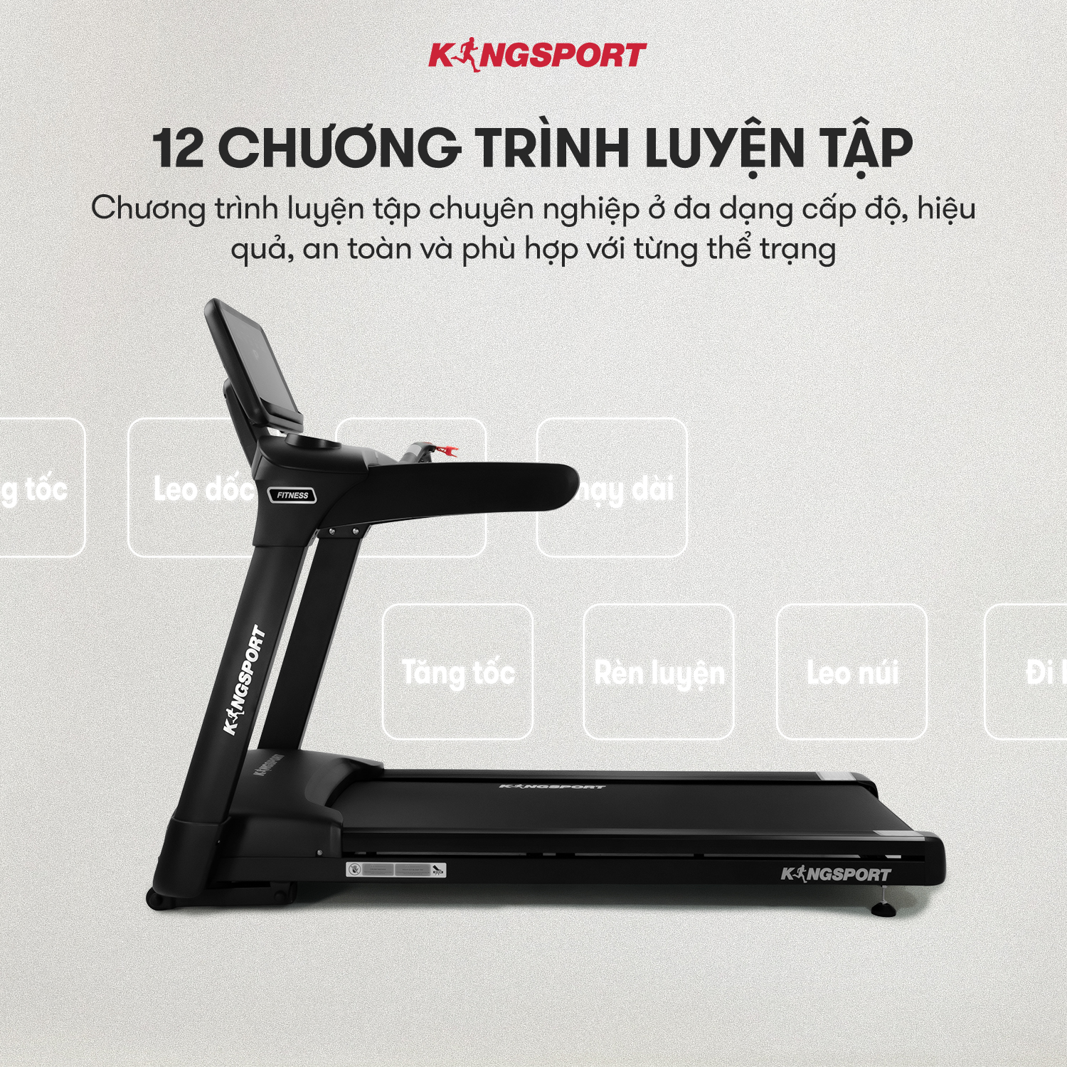 Máy Chạy Bộ KingSport KS-2055 Đa Năng - Chạy Bộ Thả Ga, Cả Nhà Cùng Khỏe ️ Thiết kế sang trọng và hiện đại phù hợp với mọi không gian ️ Khung sườn Kingtech Titan 2.0