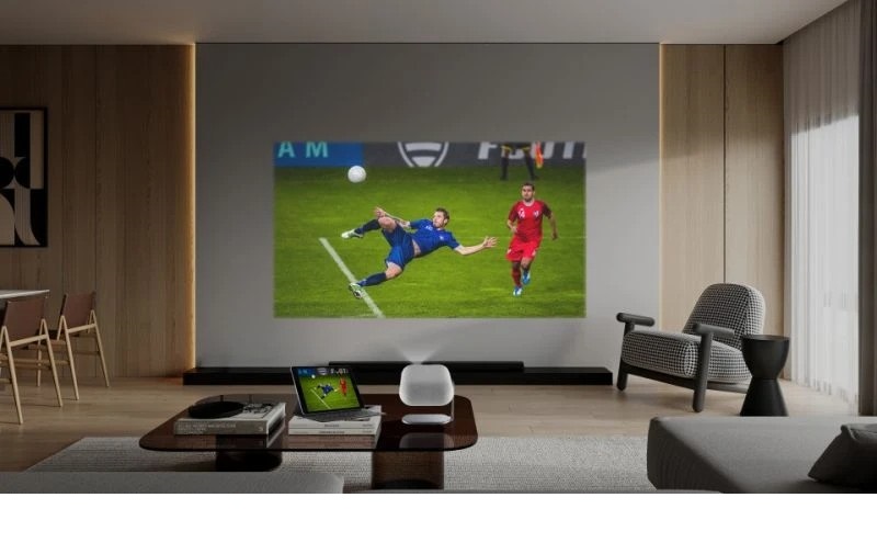 Máy chiếu Samsung LSP7T có độ phân giải thực 4K UHD 3840 x 2160 pixels cho hình ảnh sắc nét đáng kinh ngạc, công nghệ nguồn sáng sử dụng nguồn sáng laser cho hiệu quả