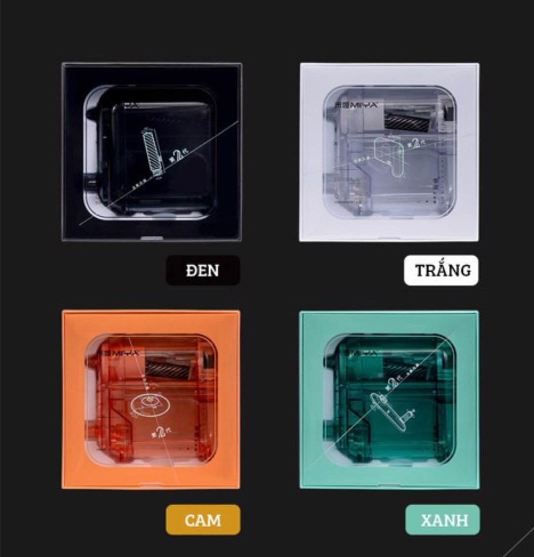 - 4 màu xinh xắn: Cam sữa, Đen bí ẩn, Xanh mint, Trắng trong suốt