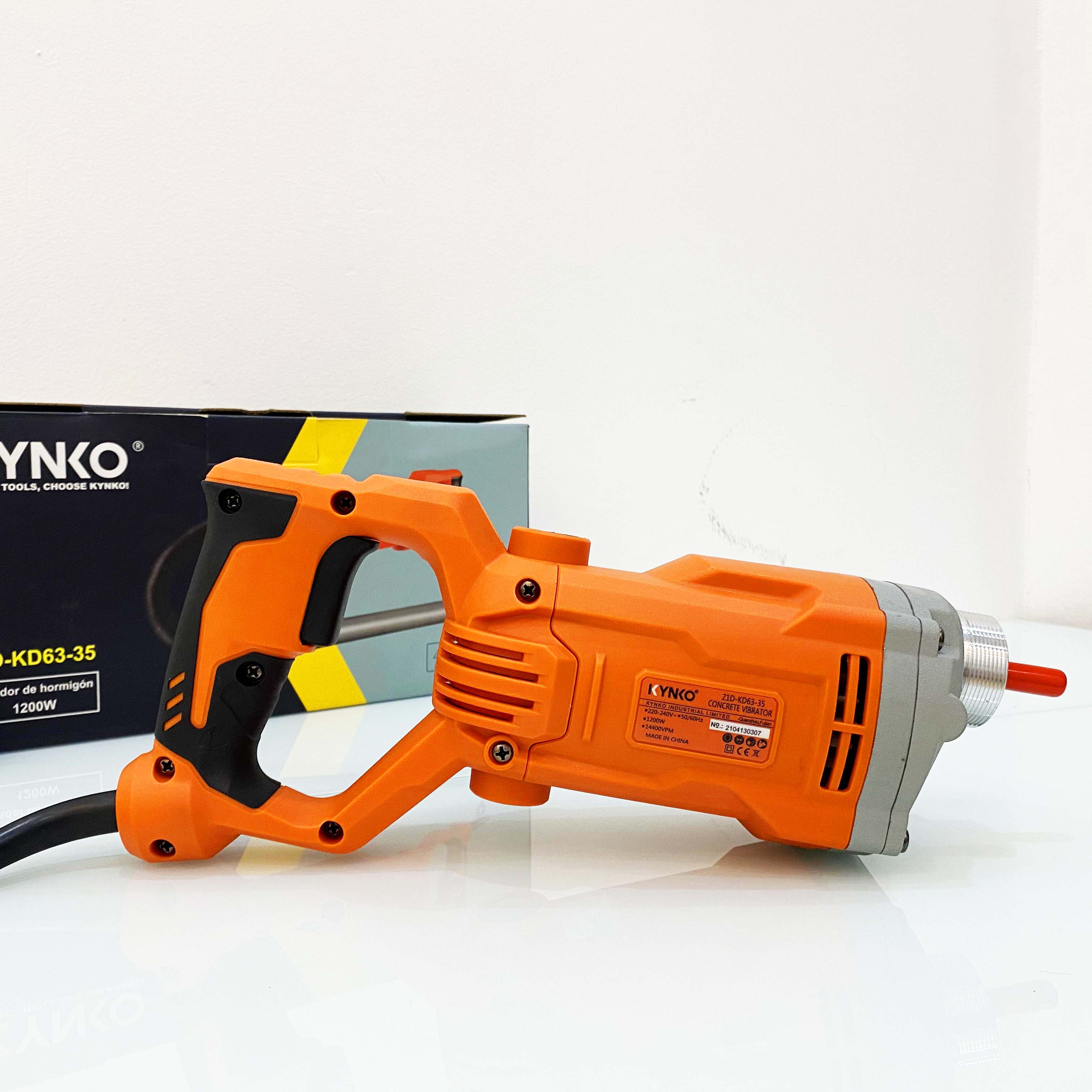 Máy đầm dùi bê tông cầm tay KYNKO Z1D-KD63-35 sử dụng điện 1 pha (220V), môt tơ dây đồng nguyên chất 100% công suất cao mạnh mẽ 1200W thích hợp sử dụng trong mọi công trình. Máy chuyên dùng để đầm bê tông, dễ dàng sử dụng. Người dùng có thể gắn máy với các loại dây đầm có chiều dài khác nhau từ 1m đến 1,5m tùy vào vị trí sử dụng. Lưu ý, dây đầm dùi được sử dụng là loại có đường kính 35mm. Tốc độ vòng quay của trục máy là 14.400 lần/phút giúp công việc hoàn thành nhanh chóng, đẩy nhanh tiến độ công trình.