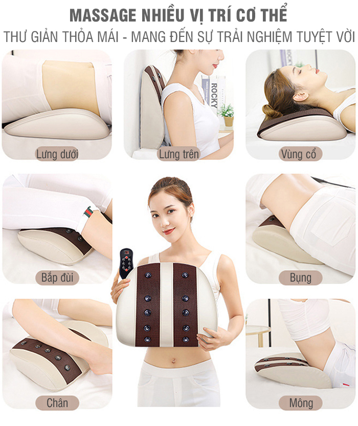 Massage nhẹ nhàng, thư giãn các vùng cơ chịu nhiều áp lực Thiết kế di động, lý tưởng để mang đi du lịch Có thể điều chỉnh tiện lợi với bảng điều khiển tích hợp