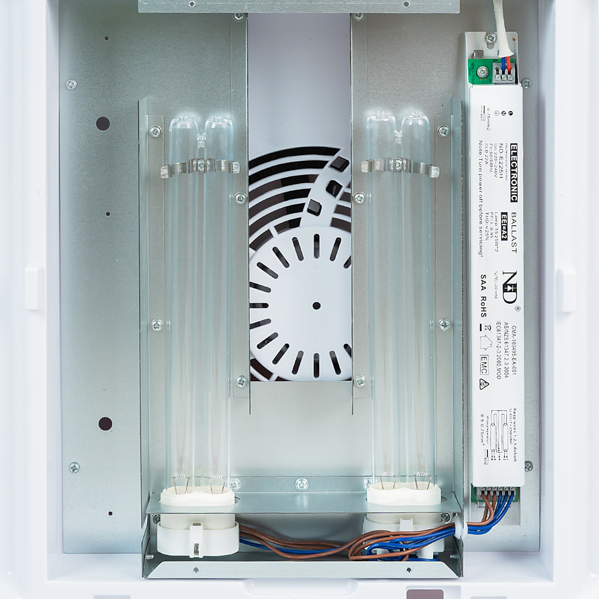 - Máy diệt khuẩn không khí YW20201 sử dụng công nghệ bức xạ tia cực tím có bước sóng tối ưu an toàn cho con người và tầng khí quyển 254nm. Với bóng đèn x2 UV Philip công suất 24W nâng tổng công suất lên 48W độc quyền giúp phá hủy hoàn toàn acid nucleic của bất kỳ vi sinh vật nào (vi khuẩn, virus, mầm bệnh, bào tử nấm mốc…), giúp phá vỡ cấu trúc phân tử DNA và ARN làm bất hoạt hoặc giết chết chúng