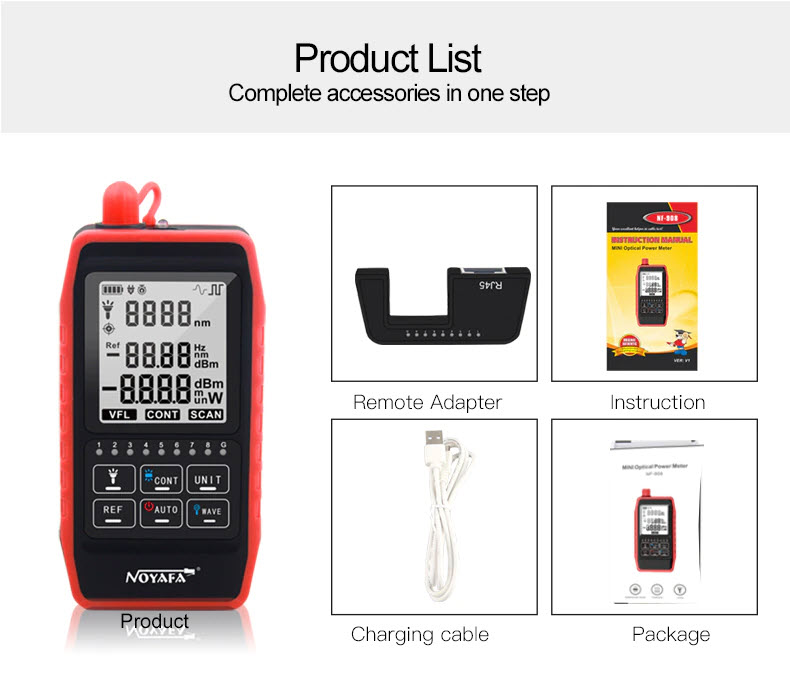 Mua tại TiktokMáy Đo Công Suất Quang Và Test Cáp Mạng NOYAFA NF-908 (Dùng Pin Sạc) - Hàng Chính Hãng. NOYAFA NF-908 Multifunction Optical Power Meter Visual Fault Locator Network Cable Test Optical Fiber Tester Item Specifics: