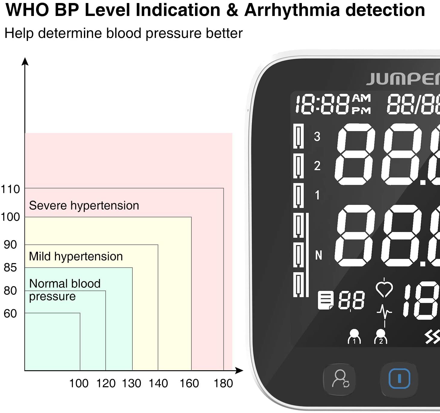 Tên sản phẩm : Máy đo huyết áp Jumper JPD-HA100 Hãng SX: Jumper Medical Xuất xứ : Trung Quốc Thiết kế sang trọng, form tiêu chuẩn xuất khẩu Châu Âu Dải đo huyết áp dao động từ 0