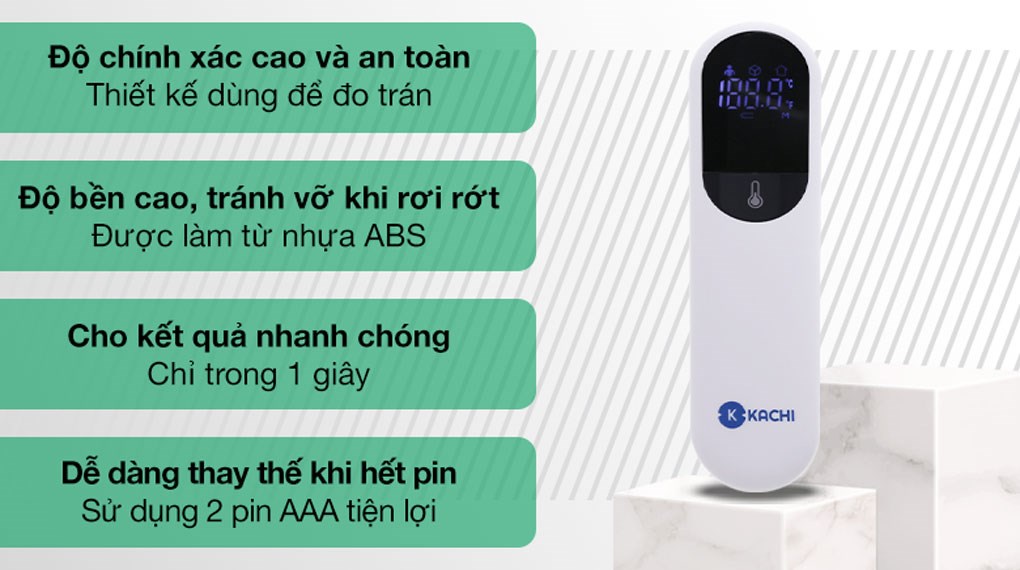 - Kiểm tra nhiệt độ cơ thể vùng trán - Cho kết quả chính xác trong 1s - Đo được nhiệt độ môi trường, vật thể - Bộ nhớ 30 lần kèm theo - Tầm