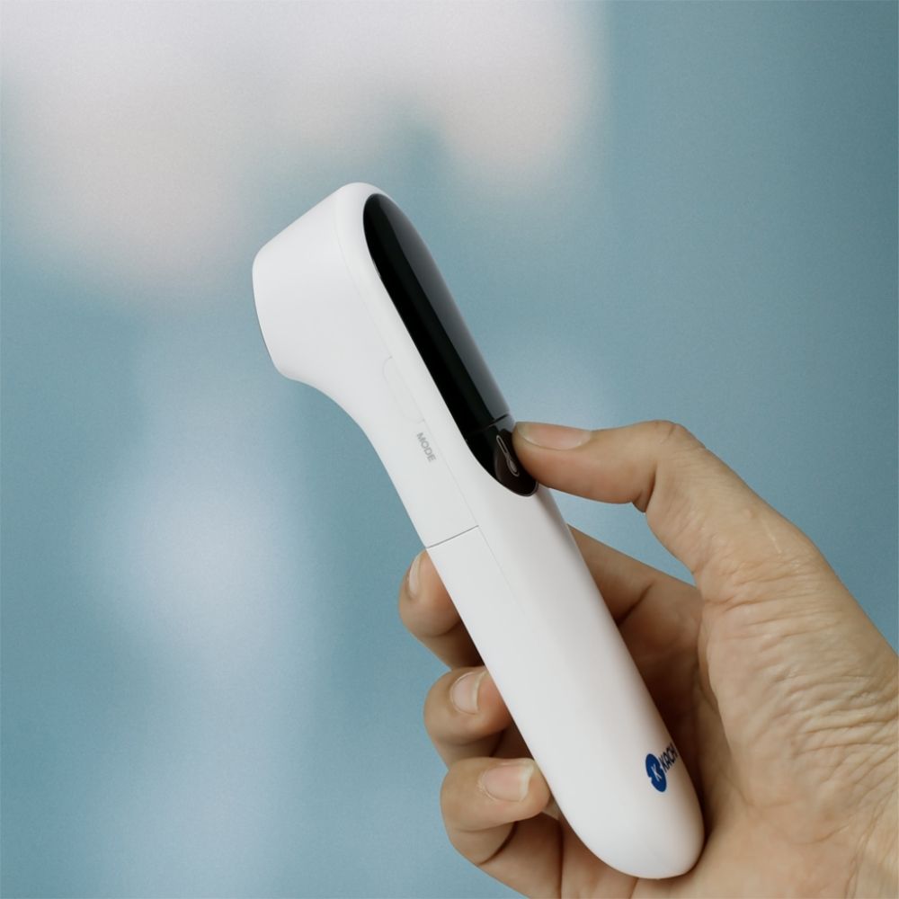 1. THIẾT KẾ VÀ CÔNG DỤNG - Nhiệt kế hồng ngoại không tiếp xúc Prompt 2 sử dụng cơ chế đo nhiệt độ bằng tia hồng ngoại, không cần tiếp xúc với da, giúp dễ dàng đo được thân nhiệt