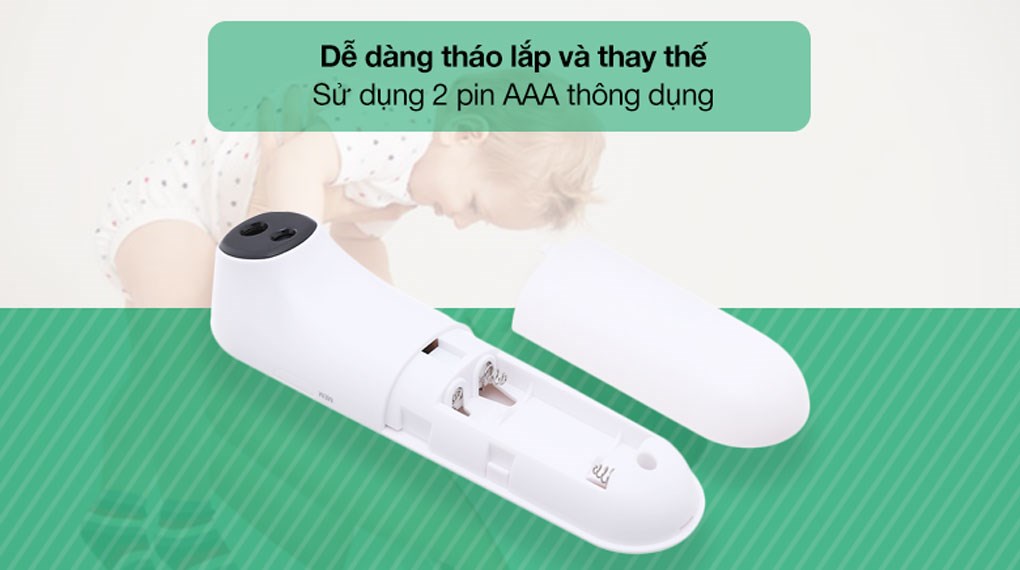 Nhiệt kế hồng ngoại hay còn gọi là nhiệt kế điện tử là thiết bị y tế theo dõi tình trạng thân nhiệt nhanh chóng và tiện lợi nhất. Đây là một dụng cụ y tế được nên có sẵn trong mỗi gia đình, đặc biệt gia đình cho trẻ nhỏ. Đa năng, hiện đại: - Đo nhiệt độ nhanh chóng, dễ dàng - Nhiệt độ đo chính xác, sai số nhỏ - Thiết kế tinh tế, nhỏ gọn - Không cần chạm sát vào cơ thể bé vẫn cho kết quả đo chính xác - Lưu trữ kết quả 32 lần đo - Nằm ngoài khoảng đo: nhỏ hơn 32 độ c màn hình hiển thị “LO” với đèn nền màu đỏ và kêu bíp 3 lần - Khi giá trị đo được lớn hơn 42,9 độ c màn hình hiển thị “HI” với đèn nên màu đỏ và kêu bíp 3 lần - Thiết bị sẽ tự động tắt nếu không hoạt động trong hơn 30s Thông tin sản phẩm: - Đo nhanh: cho kết quả sau 1 giây. - Đa chức năng: đo trán, đo tai, đo nhiệt đồ vật. - Màn hình hiển thị led kép, sắc nét và dịu nhẹ. - Bộ nhớ: lưu được 32 lần đo gần nhất. - Cảnh báo sốt bằng màu đèn và âm thanh. - Chuyển độ C/ độ F dễ dàng. Tự động tắt sau 10 giây để tiết kiệm điện. - Khoảng đo: 32-42,9 độ C (đo cơ thể), 0-100 độ C (đo đồ vật). - Pin: 2*1,5V (pin AAA). sử dụng gần 6000 lần. - Trọng lượng: 45g (không pin), Kích thước: 145*40*42mm. - Bảo hành: 24 tháng (Lỗi 1 đổi 1)
