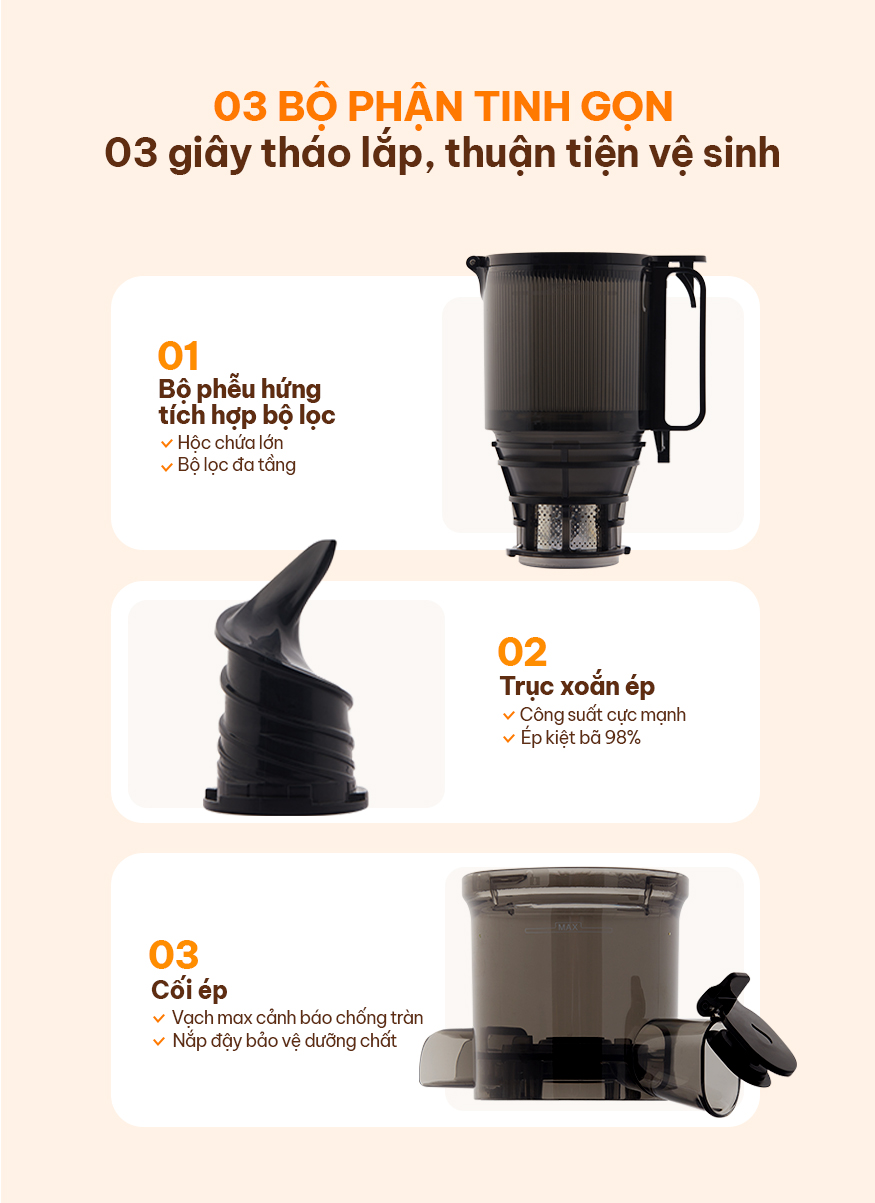 Sở hữu dấu ấn tinh giản kết hợp cùng sự tiện lợi, Máy ép chậm Comet mang lại giải pháp tối ưu, giúp nâng cao chất lượng cuộc sống và là mảnh ghép hoàn mỹ cho mọi căn bếp hiện đại:
