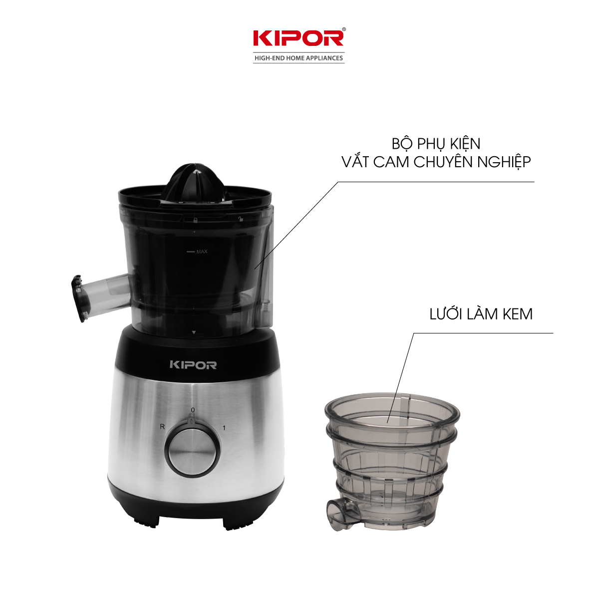 ✨Máy ép chậm KIPOR KP-SJ585 - Cửa tiếp liệu lớn ép hoa quả nguyên trái,rau má, cần tây nguyên nhánh - Tặng kèm vắt cam, làm kem -Hàng chính hãng