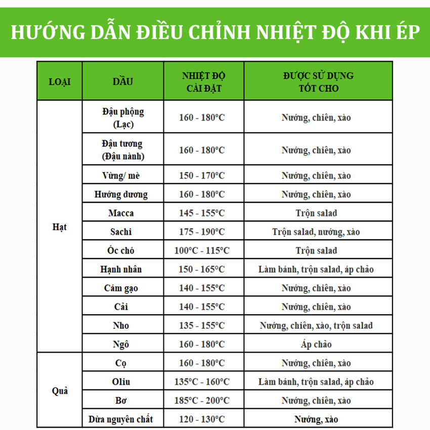 - Nguyên liệu ép không cần phải rang qua