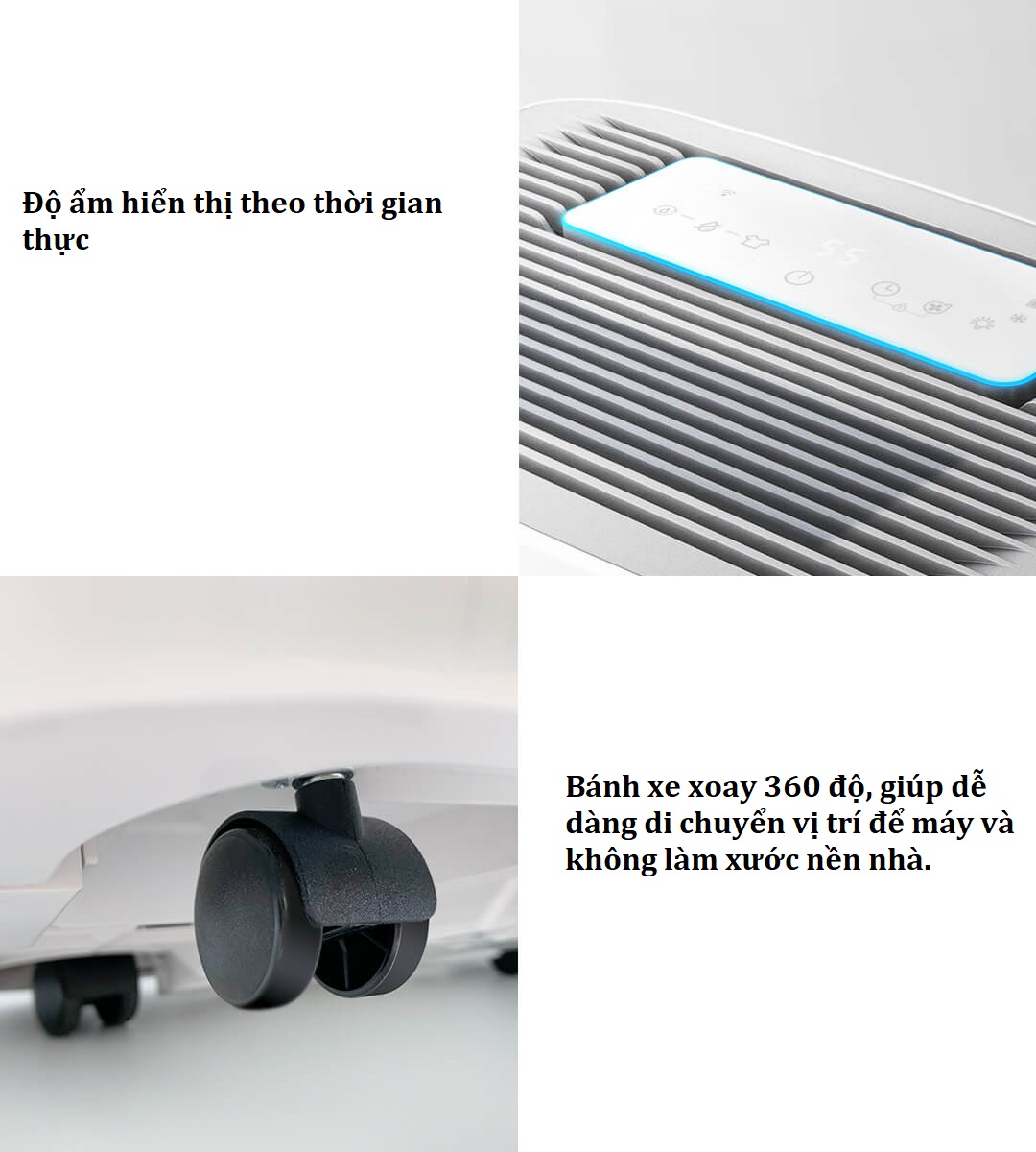 với khả năng kiểm soát chính xác và hút ẩm liên tục giúp ngăn ngừa tình trạng ẩm ướt hiệu quả, đồng thời giữ cho không gian luôn được khô ráo và thoáng đãng, đặc biệt là ức chế sự phát sinh của vi khuẩn nấm mốc gây mùi, từ đó mang lại bầu không khí tươi mát cho cả gia đình. Bên cạnh đó, sản phẩm còn được trang bị một loạt các chế độ điều chỉnh độ ẩm để duy trì độ ẩm lành lạnh, thoải mái trong tất cả các mùa, đáp ứng mọi nhu cầu sử dụng độ ẩm khác nhau của người dùng. Ngoài ra, thiết bị còn có thể được sử dụng ngay cả trong môi trường có nhiệt độ thấp ≥ 5°C.