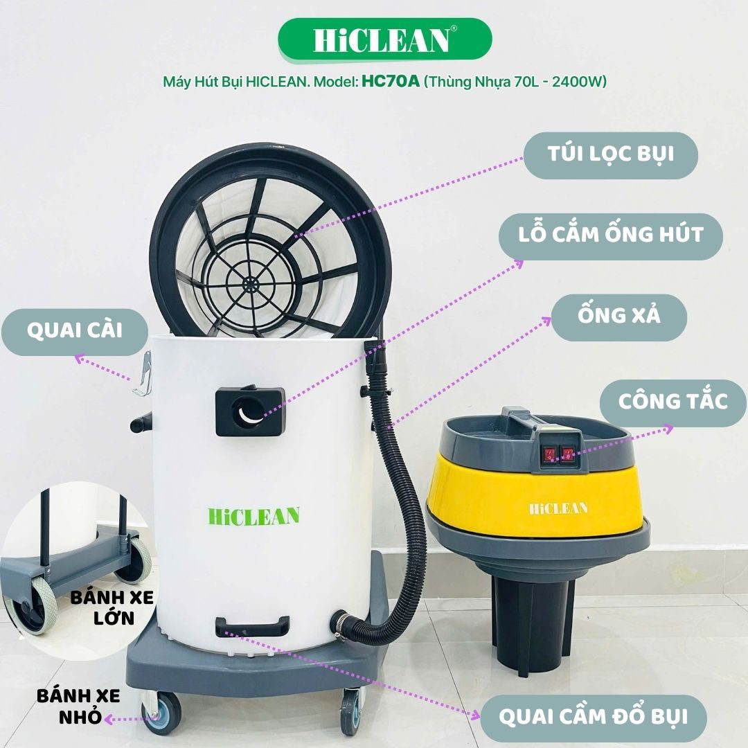 - Sản phẩm máy hút bụi HiClean HC 70A là công cụ giúp làm sạch hiệu quả khi được trang bị nhiều chức năng khác nhau như: hút bụi nước, bụi khô và cả các chất thải công nghiệp.