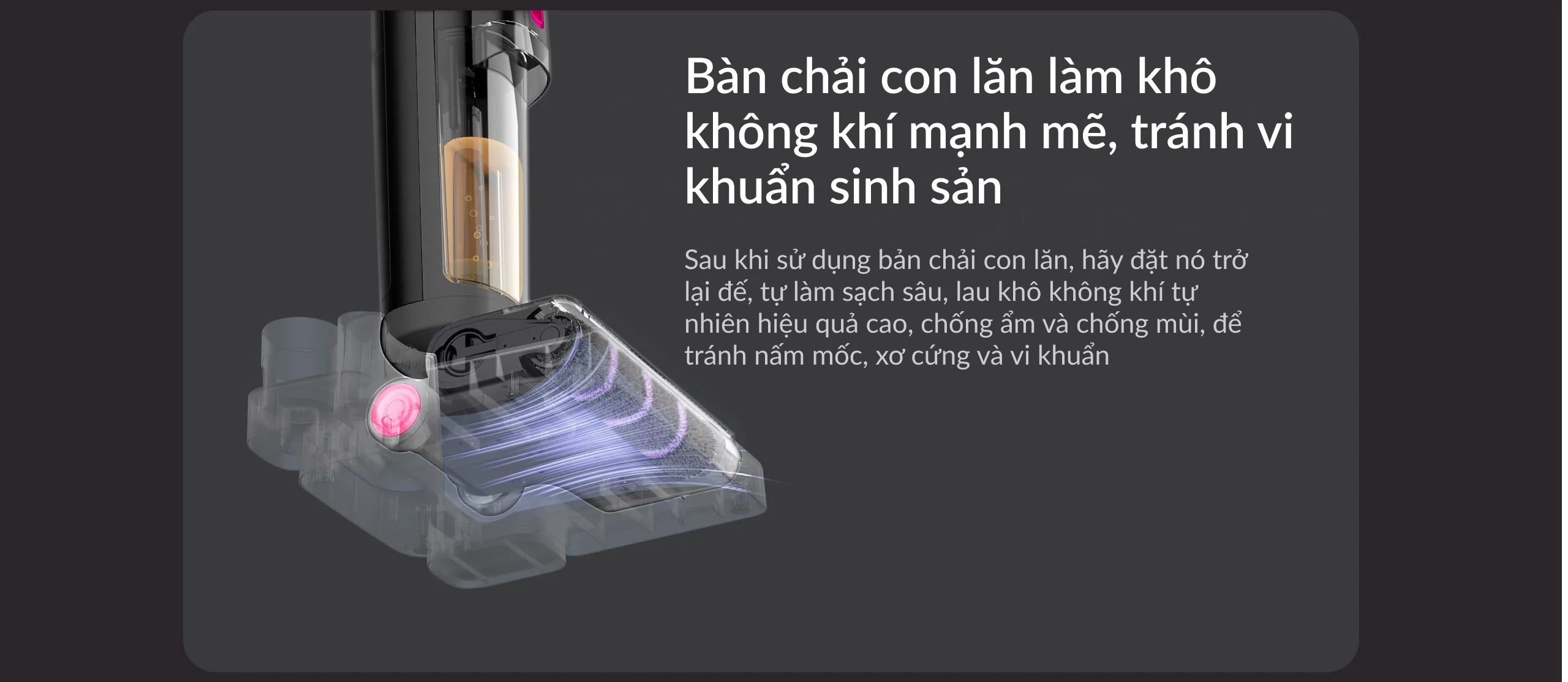 Công nghệ hút bụi lốc xoáy hiện đại không túi chứa bụi Đặc biệt thiết thực nhờ thiết kế nhỏ gọn Dễ dàng đổ sạch hộp chứa bụi chỉ bằng một nút nhấn Xử lý