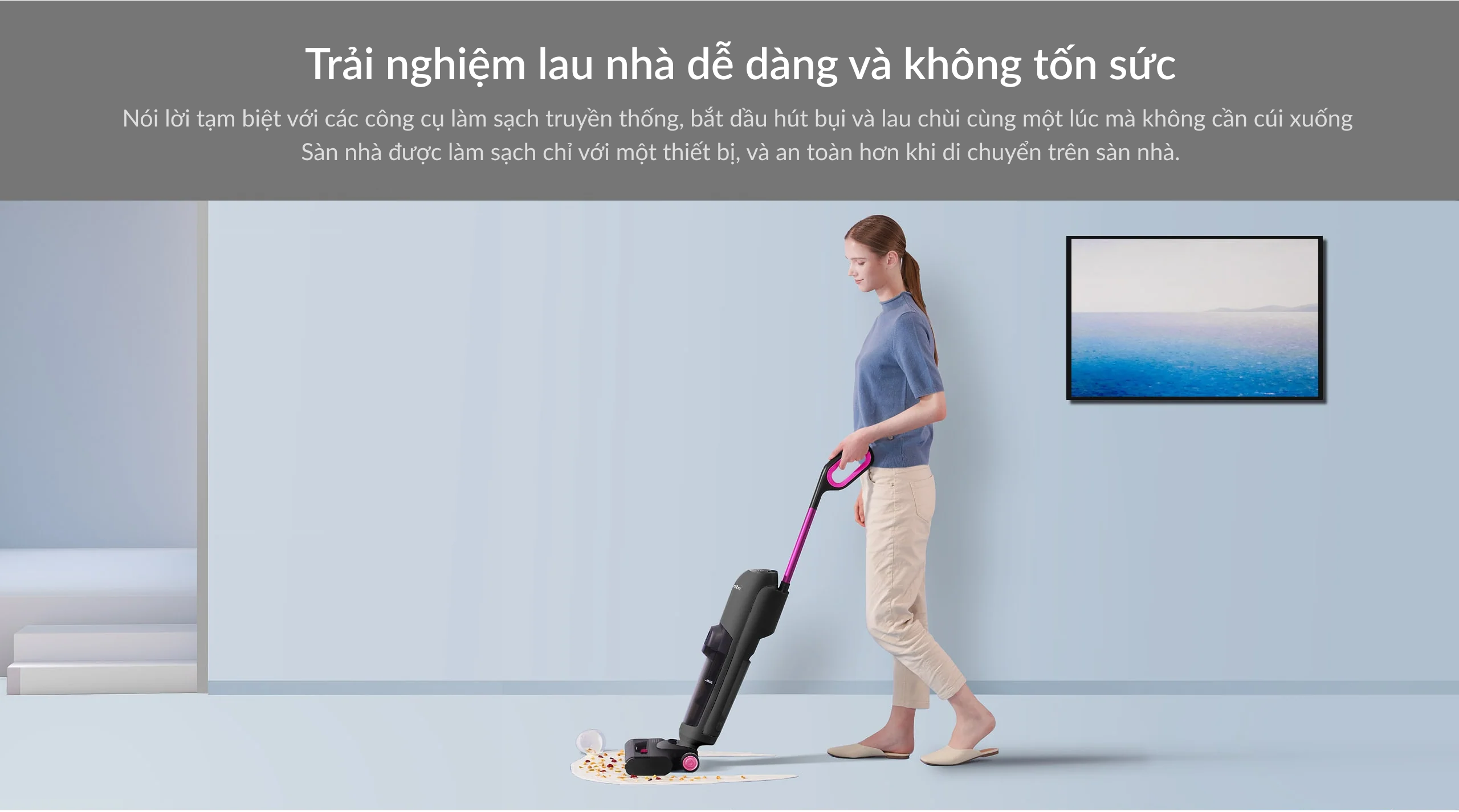 Trên tay Máy hút bụi lau sàn khô và ướt Lydsto W1