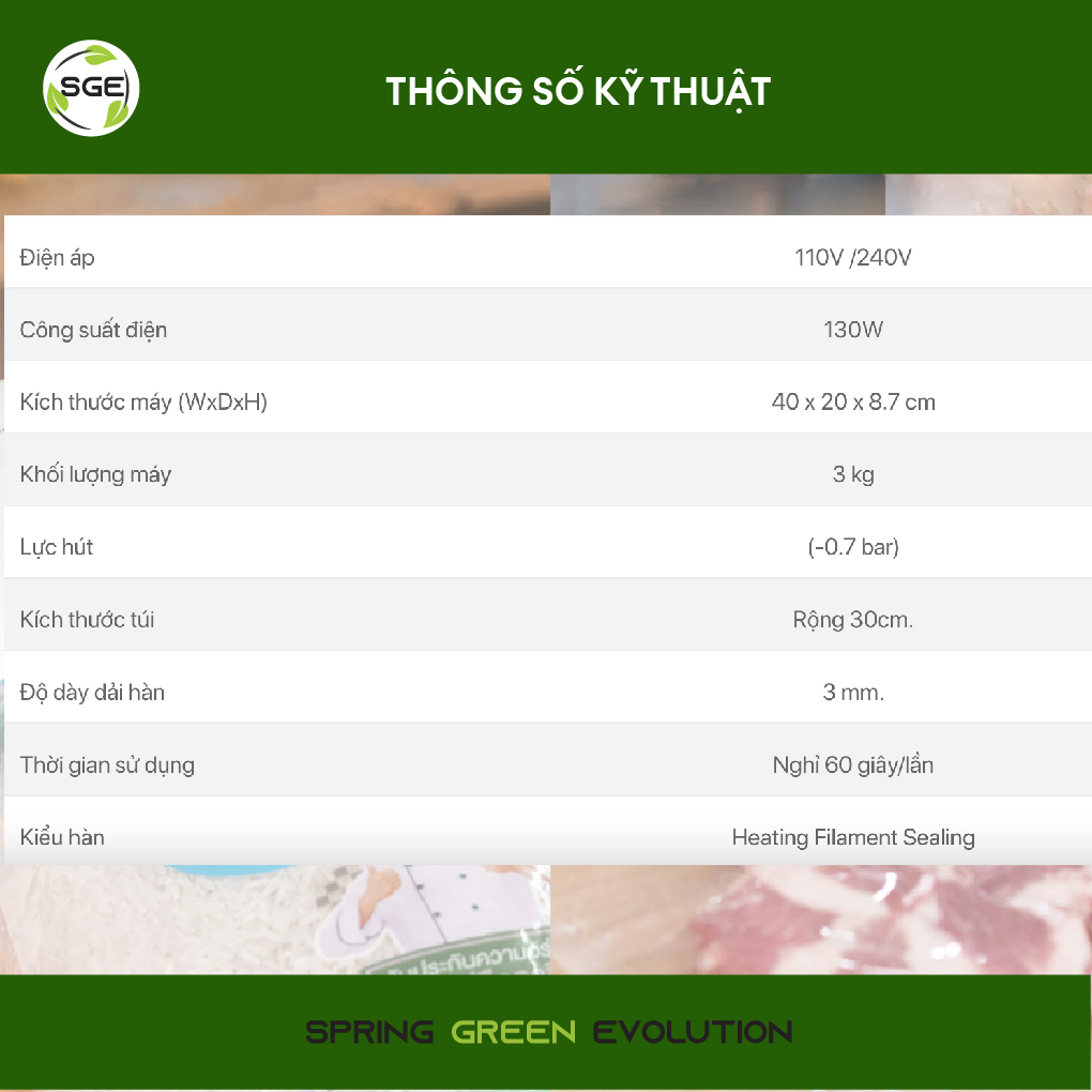 • Lực hút mạnh, hút chân không thực phẩm có ít nước tốt hơn.