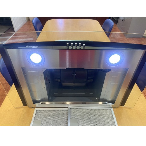 Thông số kỹ thuật: • Máy hút mùi kính cong • Thân máy bằng inox sáng đẹp • Kính cường lực dày 5mm tráng men bóng cao cấp • Điều khiển phím bấm 3 tốc