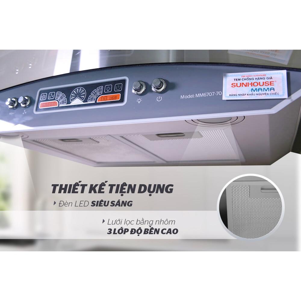 Mua tại TiktokĐặc điểm nổi bật: Máy hút mùi kính cong Sunhouse Mama MM6707-70 -An toàn, thuận tiện trong sử dụng với motor siêu bền 2 tốc độ