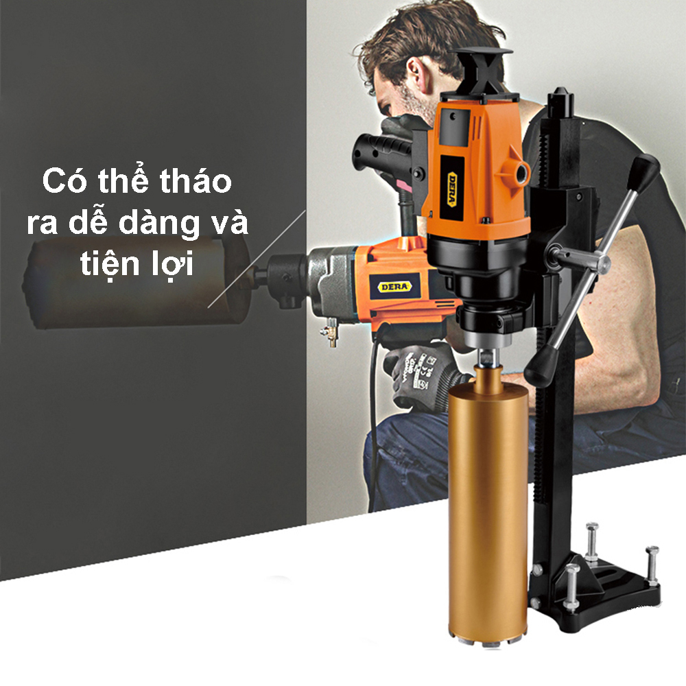 Dera phi 168 là một dạng may khoan rut loi be tong để bàn được thiết kế đặc biệt có thể điều chỉnh góc nghiêng khi cần thiết lên tới trên 20 độ so với phương thẳng đứng, nên đặc biệt hữu dụng với các hạng mục công việc yêu cầu độ khó cao.