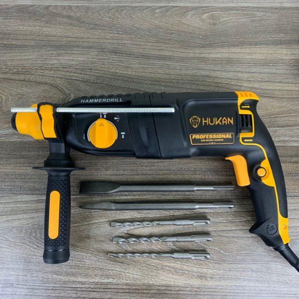 Máy khoan bê tông 3 chức năng K90 của hãng Hukan là vật dụng cần thiết trong ngành xây dựng. Dòng máy khoan làm việc với 3 chức năng gồm có khoan thường (dùng để khoan bắt vít, khoan các vật liệu gỗ, sắt, thép); khoan búa (chuyên để khoan tường, khoan bê tông) và thêm chức năng đục bê tông.