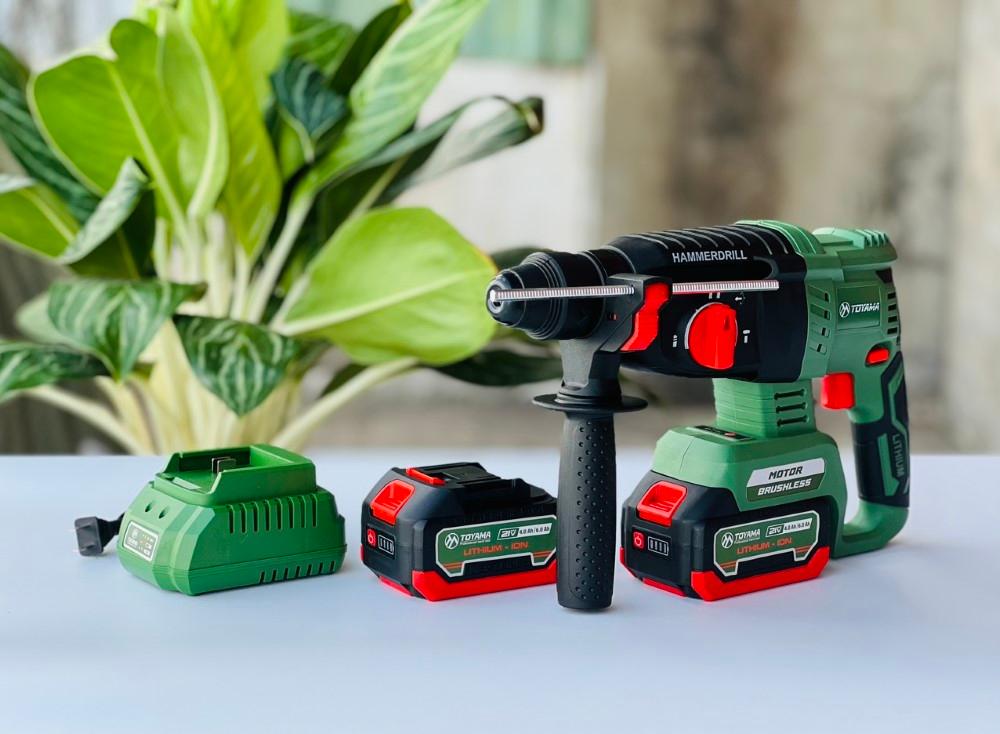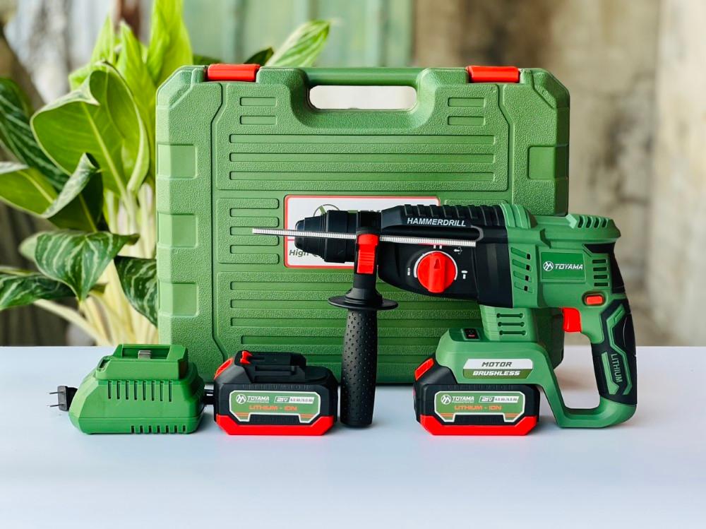 MÁY KHOAN ĐỤC BÊ TÔNG PIN 21V SIÊU KHỎE TOYAMA BT01| CẢ BỘ 2 PIN 21V/4AH + 1 SẠC | GIÁ HƠN 1 TRIỆU