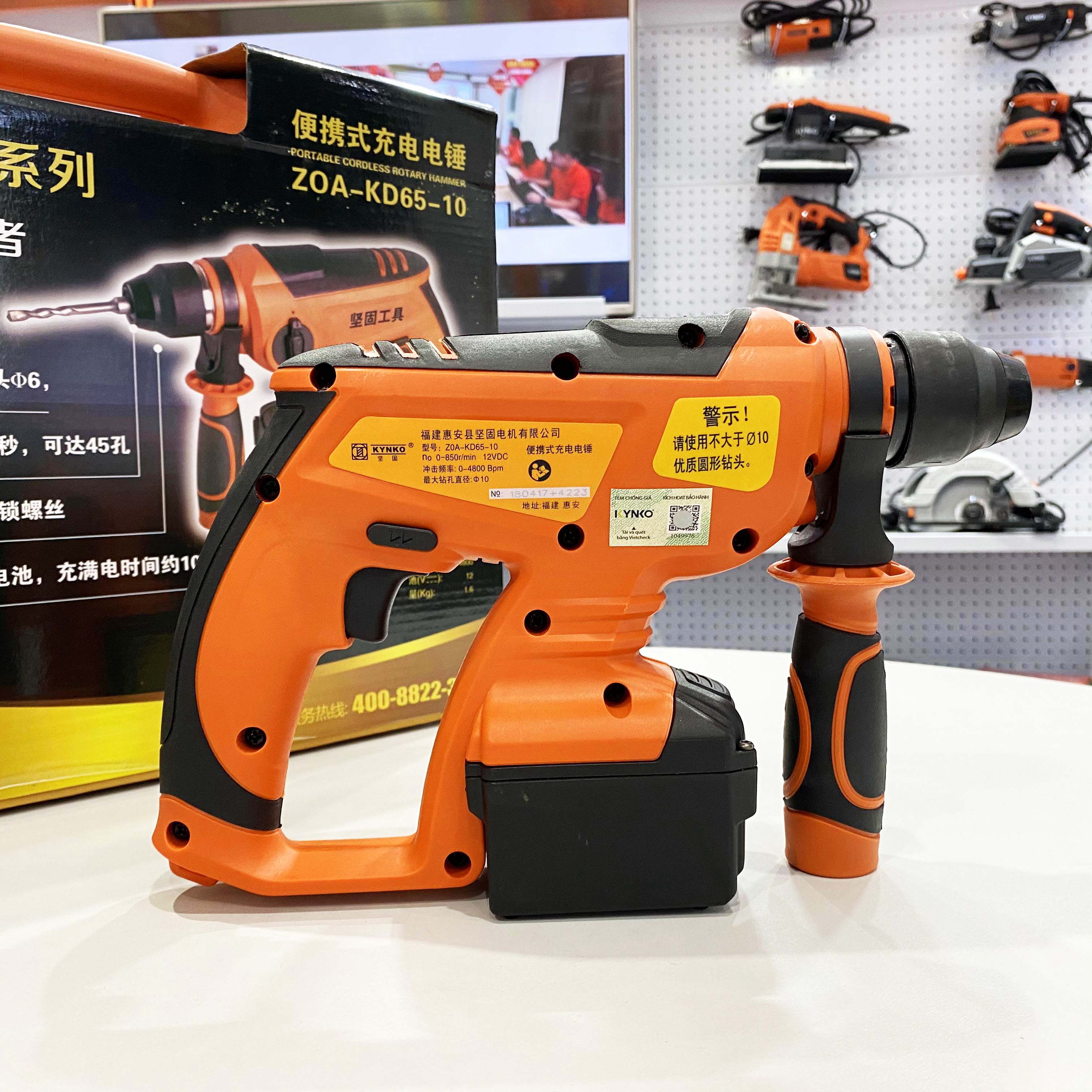 Kynko tự hào giới thiệu Máy khoan búa pin Kynko Z0A-KD65-10 được thiết kế và chế tạo đặc biệt. Không giống các loại máy khoan pin thông thường, khoan búa pin Kynko KD65 có khả năng khoan bê tông. Chức năng búa được tạo nên bởi cơ cấu piston xilanh giống như các dòng máy khoan búa dùng điện. Hiệu quả khoan bê tông tốt hơn nhiều so với các loại máy khoan pin động lực. Máy có núm chuyển chức năng sang khoan thường để khoan gỗ, sắt.
