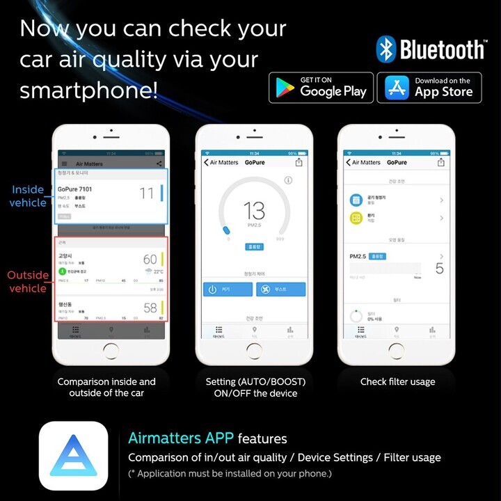 Máy khử mùi, lọc không khí trên xe ô tô Philips GP7101 nâng cấp một số tính năng như: Hiệu suất lọc khí nhanh, cảm biến chất lượng không khí 3 màu AQI, theo dõi chất lượng không khí theo thời gian thự Ưu điểm