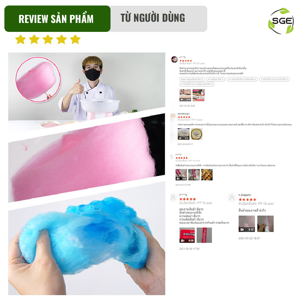 – Sử dụng dễ dàng, chỉ cần thêm đường và nhấn một nút duy nhất làm kẹo bông gòn trong 2-3 phút