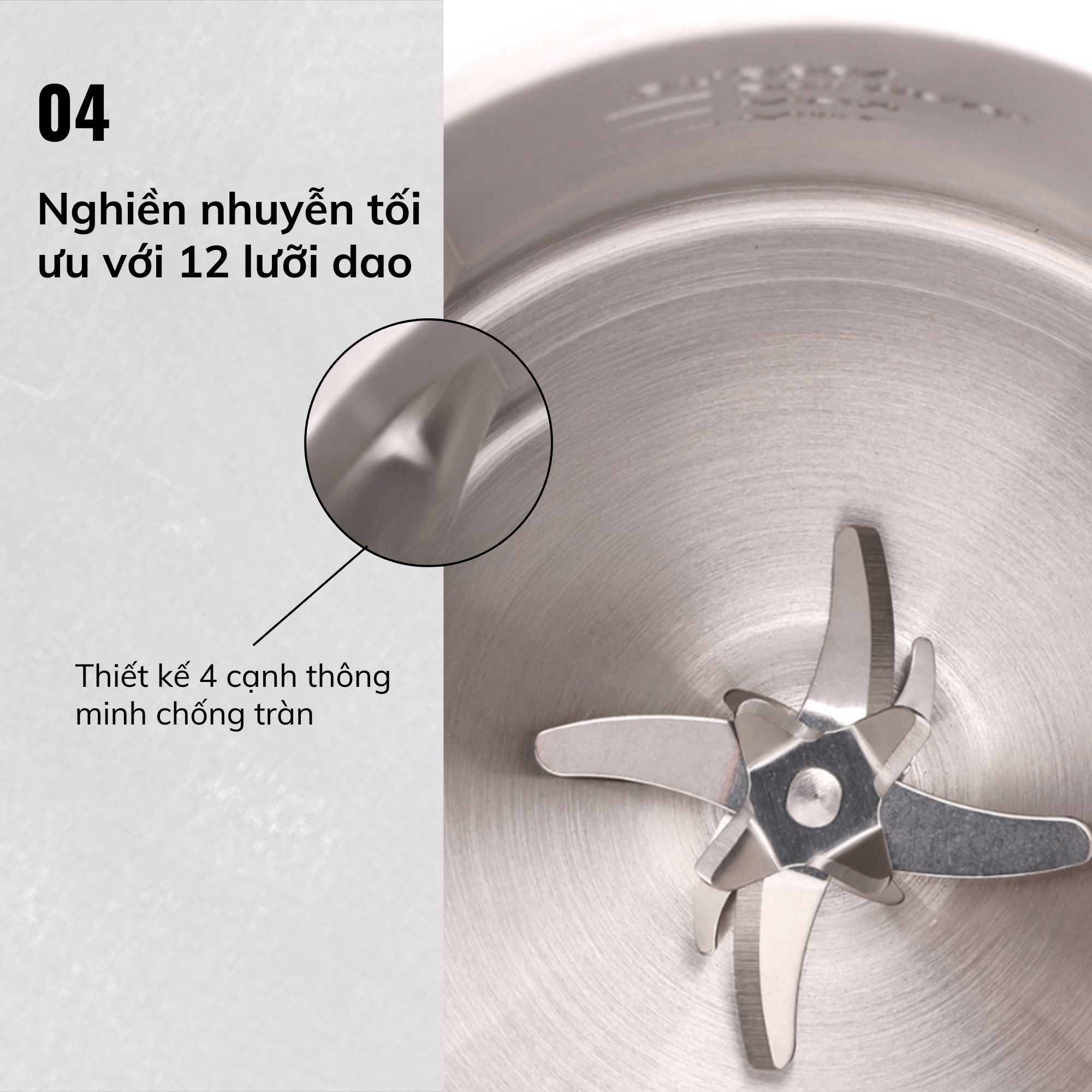 - Xay mịn hạt và sinh tố: Công suất mạnh mẽ giúp nghiền nhuyễn hạt chỉ trong vài phút.