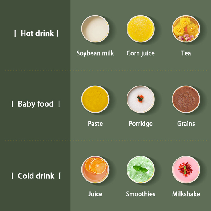 - 5 Chức năng cải tiến vượt trội: Nấu sữa hạt, Nấu cháo, Nước trái cây ngô, Xay sinh tố, Pha trà, tích hợp chế độ hẹn giờ.