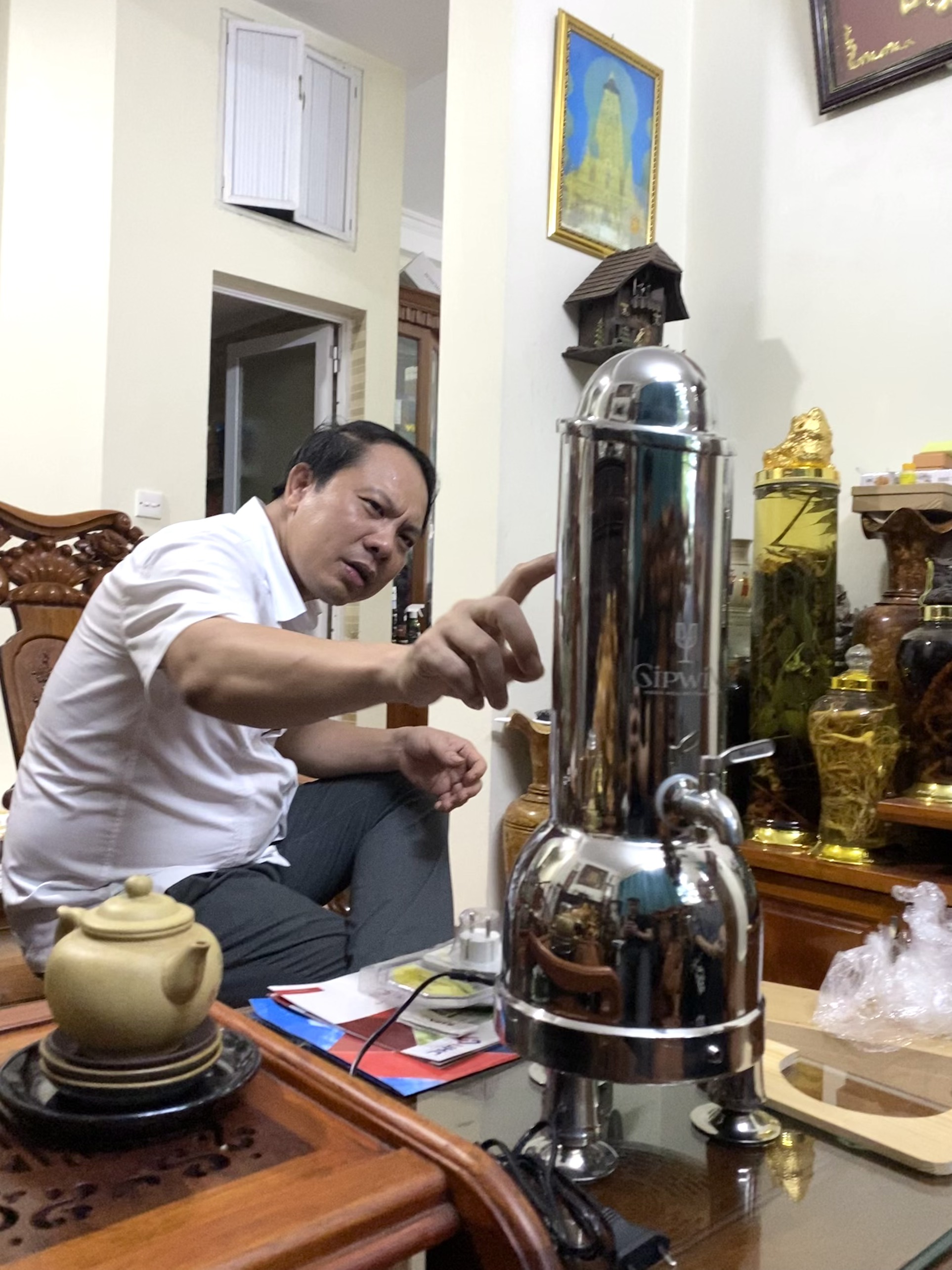 Thông số kỹ thuật máy lão hóa rượu gipwin 35L - Model : GW - 35L - Kích thước : 570x470x780mm - Dung tích : 35 lít - Điện áp : 220V/50Hz - Công suất : 610W(Max) Cách sử dụng Đối