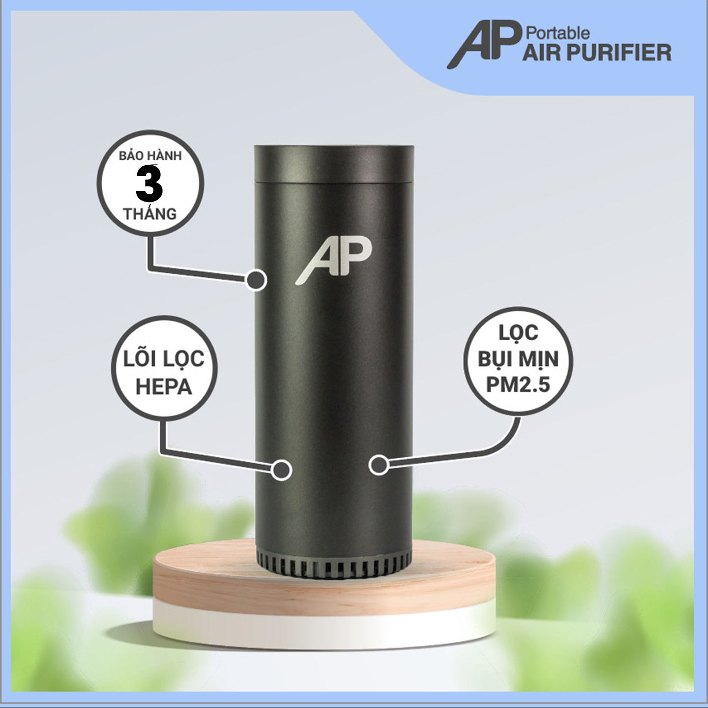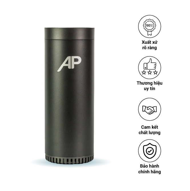 MÁY LỌC KHÔNG KHÍ CHO Ô TÔ/ XE HƠI AIR PURIFIER Máy Lọc Không Khí Ô Tô AP là máy Lọc Không Khí Và Khử Mùi mini và đa năng dành riêng cho không gian Ô Tô, Xe Hơi, Văn Phòng, Phòng Ngủ với Lõi Lọc HEPA 3 lớp. Giúp bạn đánh bay bụi mịn PM2.5 và các loại mùi khó chịu trong ô tô trong tích tắc. TẠI SAO CẦN PHẢI SỞ HỮU NGAY MÁY LỌC KHÔNG KHÍ Ô TÔ AP? Tình trạng ô nhiễm không khí tại những đô thị lớn ngày càng trầm trọng hơn trong những năm gần đây. Đối với những ai phải thường xuyên di chuyển ở trong các thành phố lớn thì đã đến lúc bạn phải trang bị một máy lọc không khí đặt trong ô tô/ xe hơi. Bạn có biết không khí trong xe ô tô luôn tích tụ nhiều bụi bẩn và mùi hôi khiến cho bạn cảm thấy mệt mỏi và nhức đầu? Vì xe ô tô là không gian kín, khói bụi khi từ bên ngoài lọt vào thường không thoát ra ngoài triệt để. Vì vậy, Máy lọc không khí mini dành cho ô tô AP giúp bạn ngăn ngừa các loại bụi bẩn độc hại tích tụ và bám trong xe gây bệnh cho con em và chính bản thân bạn. THIẾT KẾ TỐI GIẢN – VẬT LIỆU CAO CẤP: Về tổng thể, Máy lọc không khí cho ô tô AP có thiết kế cực kỳ tối giản với chỉ một nút duy nhất ở mặt trên máy khiến cho máy trở nên gọn gàng. Thân máy được thiết kế tối giản do loại bỏ các bộ phận, chi tiết không cần thiết. Kích thước máy nhỏ gọn chỉ 6.5 x 17.2 cm khiến cho máy có thể chìm vào trong không gian nội thất xe của bạn mà không gây ra sự nổi bật quá lớn. Hộp máy sang trọng, trang nhã thích hợp làm quà tặng cho những người thân yêu của bạn. Toàn bộ máy được sơn màu đen mờ mang đến ấn tượng mạnh mẽ ở ánh nhìn đầu tiên. Chính thiết kế này mang đến vẻ thể thao, năng động nhưng không kém phần sang trọng cho xe của bạn. Kích thước máy nhỏ gọn có thể lắp đặt được bất cứ nơi đâu, tại băng ghế trước hoặc băng ghế sau đều có thể mang tới hiệu quả giống nhau. CẤU TẠO ĐƠN GIẢN – HOẠT ĐỘNG MẠNH MẼ Máy lọc không khí cho ô tô AP tuy có thân hình nhỏ gọn nhờ vào sự sắp xếp hợp lý của các bộ phận cấu thành nên một máy lọc không khí hoàn chỉnh.