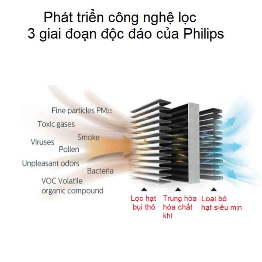 - Sử dụng công nghệ Airmax đời mới nhất của Philips, lọc 3 giai đoạn mạnh mẽ: Bộ lọc không khí xeon GoPure của Philips có hệ thống lọc không khí nhanh và hiệu quả. SelectFilter Plus 3 giai đoạn độc đáo loại bỏ tới 125 chất gây ô nhiễm có hại và khí thải, thông qua các lớp HEPA và HESA. Được chứng nhận độc lập bởi Airmid Healthgroup, công nghệ SelectFilter Plus cũng loại bỏ tới 90% các chất gây dị ứng phấn hoa trong không khí.