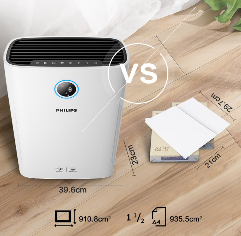 - Máy lọc không khí hàng đầu của Philips là Series 2000 AC2726/00. Đây là một máy lọc không khí 2 trong 1 cao cấp kiêm máy tạo độ ẩm. Máy làm sạch không khí trong nhà và làm cho nó ít khô hơn. Máy lọc không khí Philips Series 2000 AC2726/00 giúp loại bỏ tới 99,97% các chất ô nhiễm trong không khí như vi khuẩn, virus, PM 2.5 và PM 10. Máy làm sạch diện tích 861ft2² và hoàn hảo cho không gian kín. Nó có CADR là 310m3/h, đủ để duy trì AQI tốt.